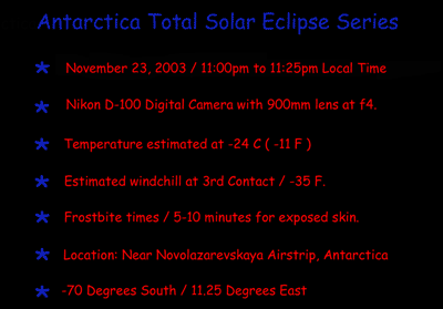 Antarctica Expeditions Organized by Jen Winter ICSTARS to Lead 2008 Total Eclipse Expedition to Mongolia! NEW! Slideshows: People / Landscapes / Planning