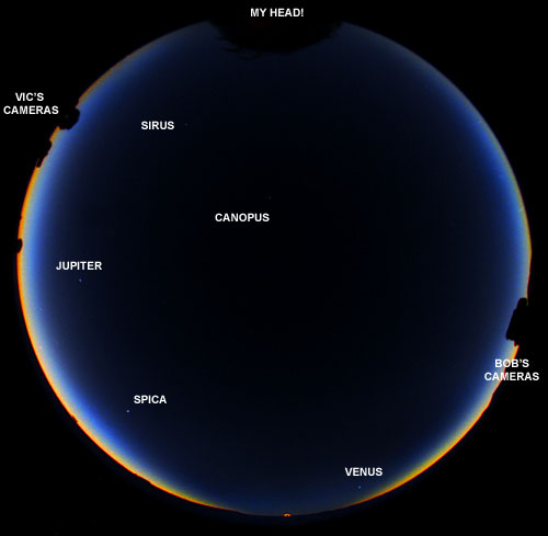 This eclipse was one of the darkest we have ever witnessed. Because of the virtually unobstructed horizon in all directions the "sunset" effect was greatly enhanced. Venus, Mercury, Jupiter, Spica and Canopus were all seen naked eye during totality. ![]() ![]() ![]() |
