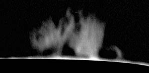 Photographed with Kodak Tech-Pan 2415 black & white film and a prototype prominence hydrogen alpha filter. The afternoon of March 5th, 2001 was clear, but cold (43 degrees F). These photos were taken between 18:30 UT and 19:30 UT.