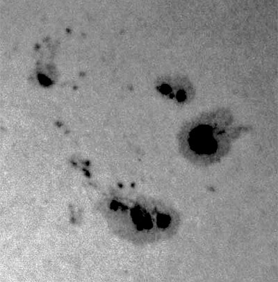 Tuned way off-band, you can see the naked-eye group pg sunspots in region 9601.