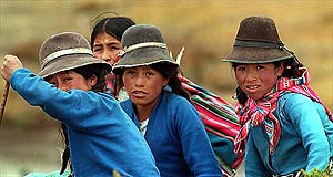 Evenrude man turned off the engine and lifted the weed entangled propeller out of the water and we CAREFULLY stepped up to the peer. Our guide, Ivan talked briefly about the unsafe, parasitic conditions of the water, but nobody listened, too busy taking in the view above. He told us that we were on the West side of the island and that the Aymara Indians believed that since the west was where the sun went down, that the west side of the island was where you went to die. "No one lives on this side of the island, except one man. He lives in the little hut you see here. He is a little mad, too." We saw a silhouette above us on the hillside, but none of us could discern if this was him. We began to climb the terraced hillside and began to notice several native children - or rather they noticed us. Ivan told us that the Andes were originally under the ocean floor and were pushed up, bringing several fossils and sea shells. As we walked, soon we were all holding handfuls and pockets of