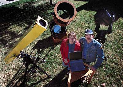 | Vic & Jen with a few of the telescopes they use to photograph the heavens. | |