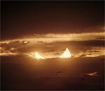 Youll see sunrises and clouds and the sun close up, and awesome storms over the plains. Youll see splendid scenes in the night sky out there in what seems like darkness beyond the earths atmosphere. Ever since age 5, Ive been interested in the sky. The first small cumulus cloud I remember seeing filled me with excitement. Soon, I realized that those small clouds changed shapes and often began to grow. Now, I know that an approaching cold front or the days heat may deliver enough energy to produce hail, squalls, lightning and maybe even a tornado. All that can occur within hours of the time you first spot that little cumulus cloud. And in a matter of minutes the thunderstorm can wither as downdrafts take over and the violence fades away. Then the sky clears and just a few clouds are left to create a beautiful sunset.